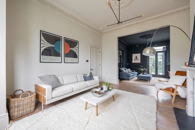 While planning the new kitchen, we also worked on the reception area which was divided into two rooms and that led to the side passage from the right side and to the dining area and then kitchen from the left. As per the designs we opened up the lounge space to the front of the property creating a dedicated reception area. This worked out perfectly as now the house has a huge hall with two sitting areas which gave access to the to the kitchen + diner and then the patio garden. The narrow portion of the side passage is now utilised for storage.