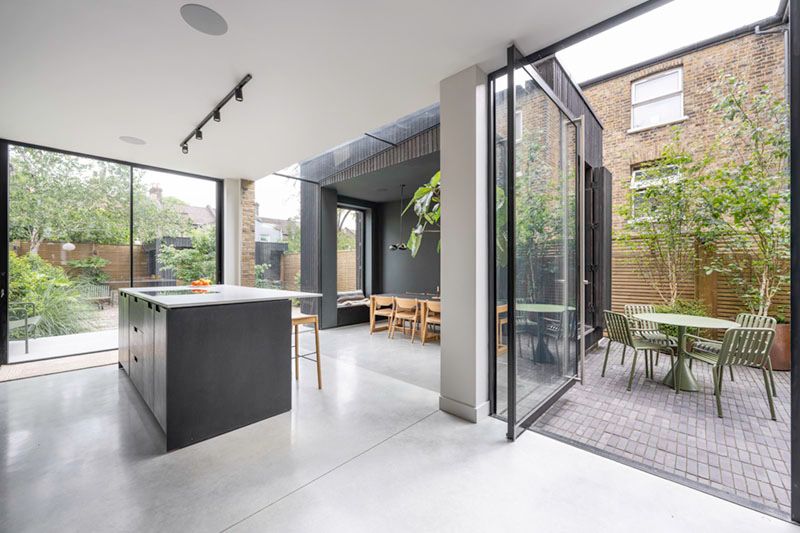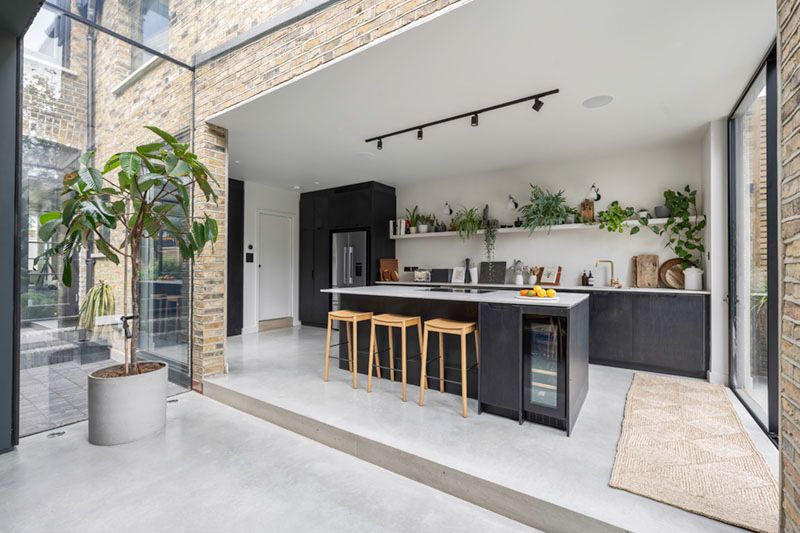 The goal of this project was to create a bespoke and spacious kitchen and dining area which was at the rear of the house and making a seamless transition between the garden and kitchen. We extended the house to the side and rear and built a separate structure to the side that is connected to the extension and existing property by a full glass connector creating an illuminated passage which acts as both a visual separator and bright connector between the kitchen and dining space. This has transformed the space.