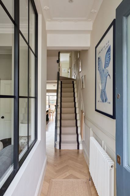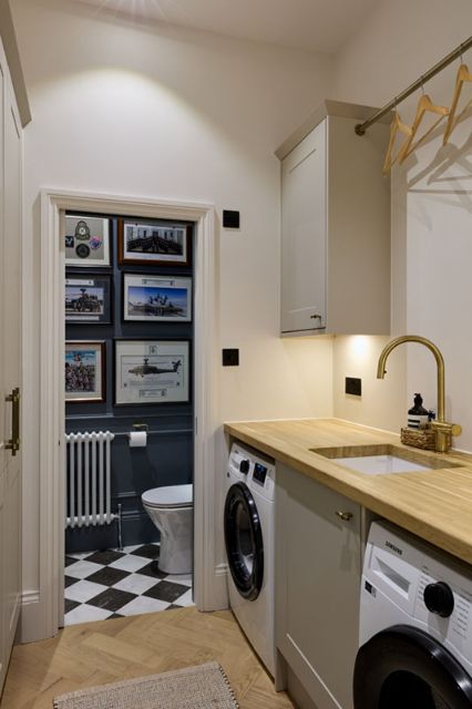 The ground floor had one spacious reception area with a large bay window but our clients wanted to draw some of that light into the hallway. This was achieved by adding a single large window panel in the wall between the sitting room and the hallway, transforming the space into a bright and airy space. A WC was installed downstairs alongside a new utility room, matching the aesthetic of the newly refurbished reception area.