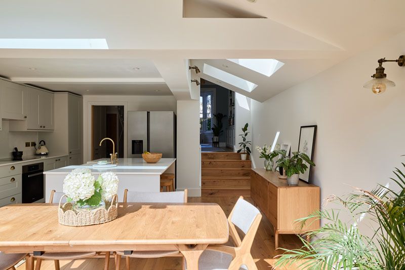 The team at Creative Spaces worked with the clients here to design a rear and side return extension to their Victorian Terraced house in Stoke Newington. The property is located on a quite residential street in this trendy neighbourhood of London. This was a typical Victorian terraced house with the kitchen jutting out from the back of the house. The original ground floor space was divided into a long narrow entrance hall with a staircase and door to the living room at the front of the property. This lead to a dining room at the back which then led onto the dark and small kitchen. Our clients wanted to reconfigure the downstairs space to add plenty of light and add a wc on the ground floor and a large, bright and spacious kitchen diner to the rear of the house.